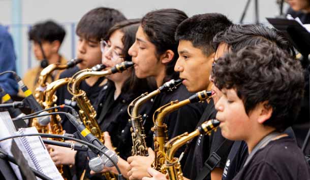 JAZZLAB apoya la formación de talentos jóvenes en espacios escolares, integrando la educación en jazz a procesos donde la música fortalece el desarrollo artístico, personal y colectivo. Su propuesta promueve escucha, trabajo en equipo y crecimiento compartido desde la práctica del ensamble.