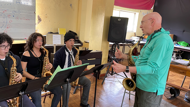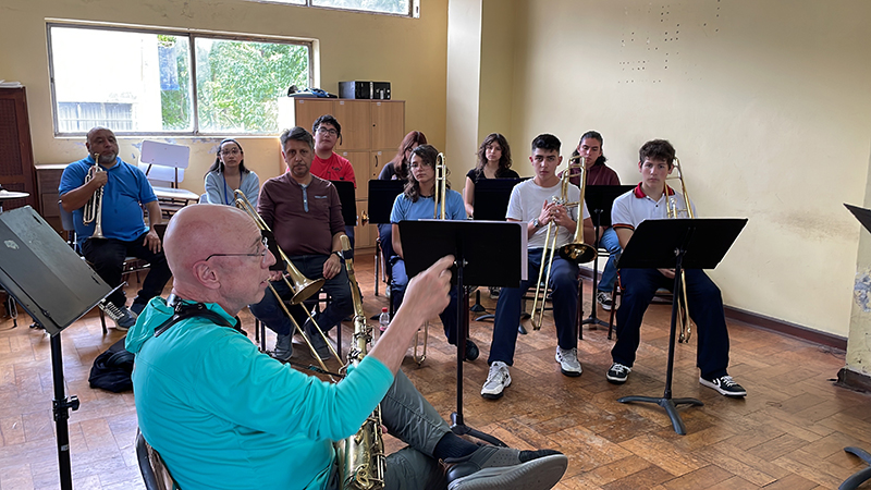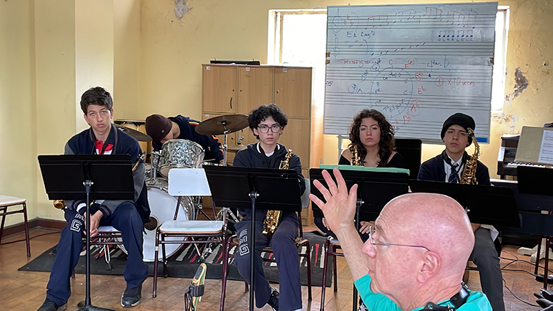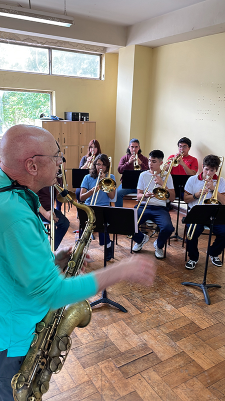 Taller Encuentro con el Saxofonista y Educador Mike Tracey el 8 de abril de 2024. El destacado profesor y saxofonista Michael Tracy visitó concepcion para realizar un concierto con Big Band Concepción Jazz y aprovechamos de generar un encuen tro con los jovenes músicos de la Banda Juvenil donde el Maestro entregó sus conceptos, ideas y música con los jóvenes.